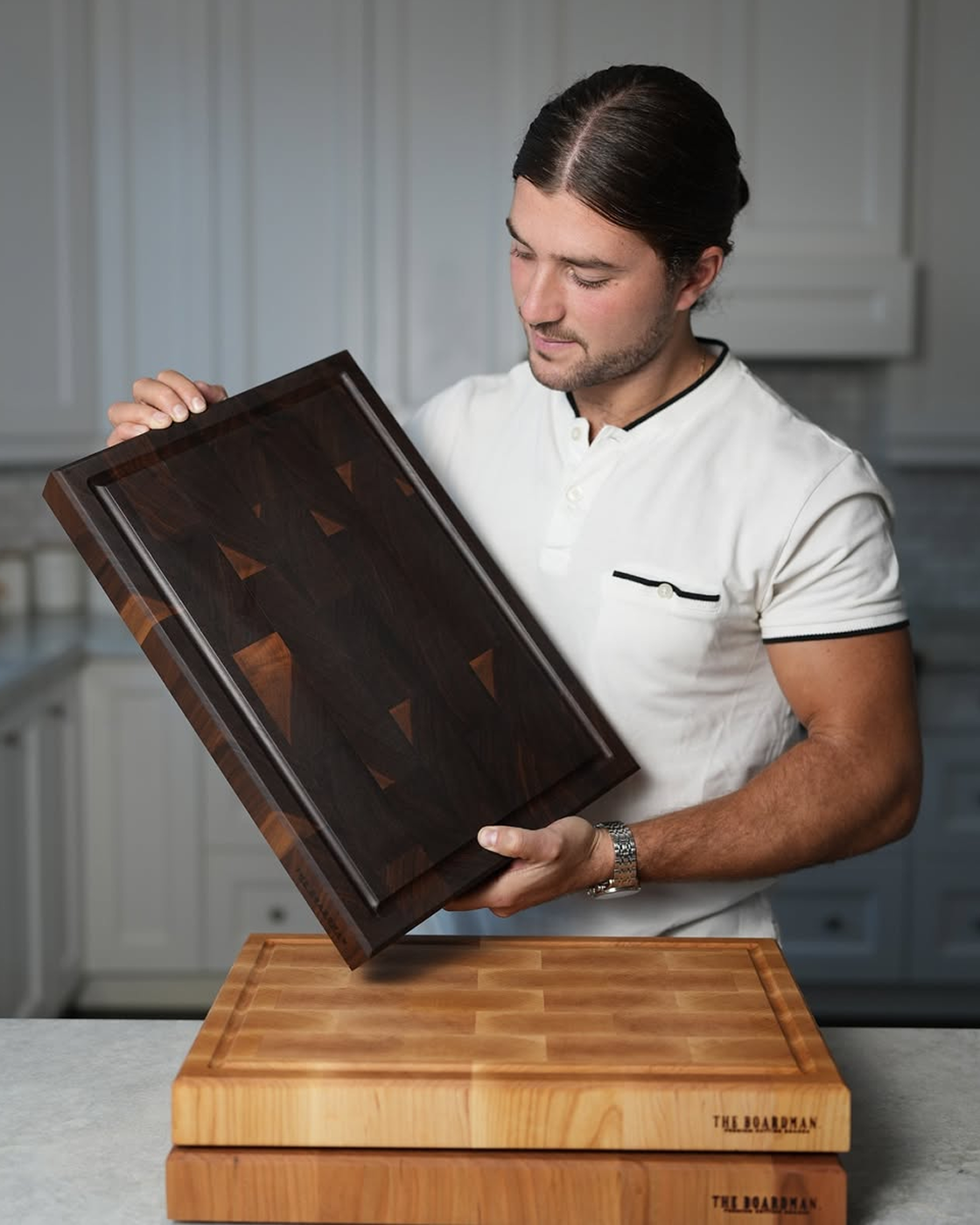 Every board we make takes 3-4 days of hands-on work. We select premium North American hardwoods, cut them with precision, assemble with care, and finish by hand. No shortcuts. No mass production. Just craftsmanship you can feel.